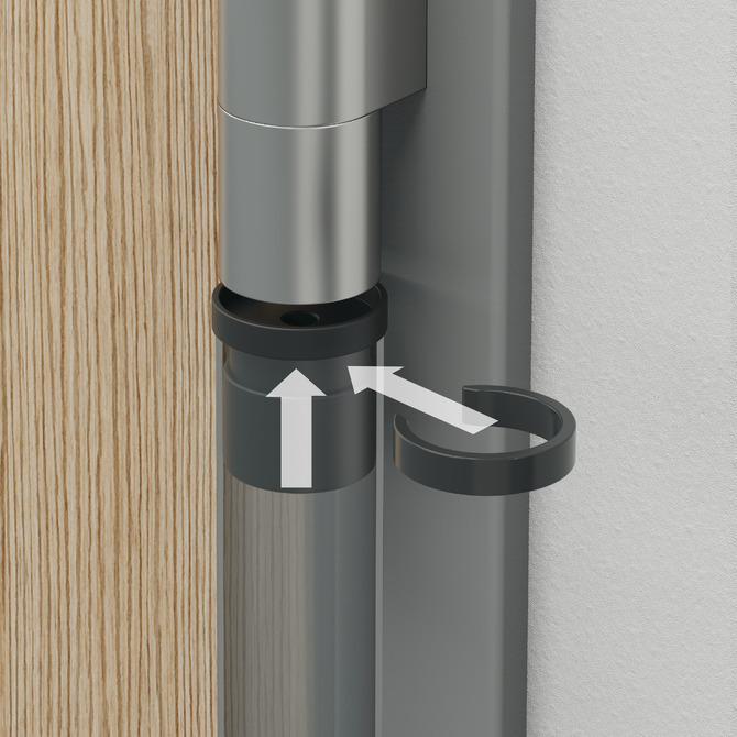 Mit den 2-teiligen Sets für die Absicherung des Segments unter dem unteren Türband und zwischen dem unteren und oberen Türband erhalten Sie ein 1755 mm hohes Abdeckprofil zum Selbstzuschnitt.