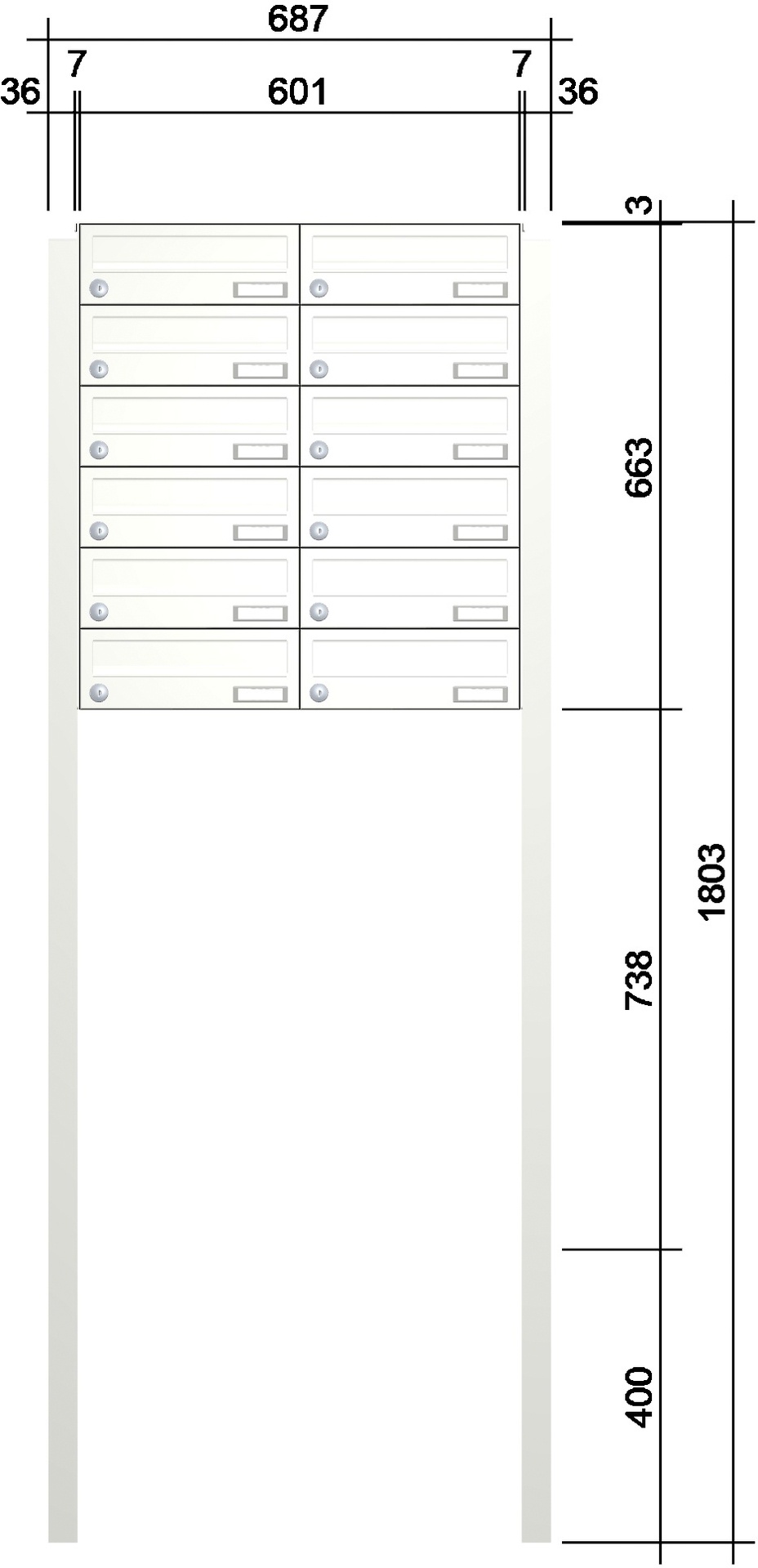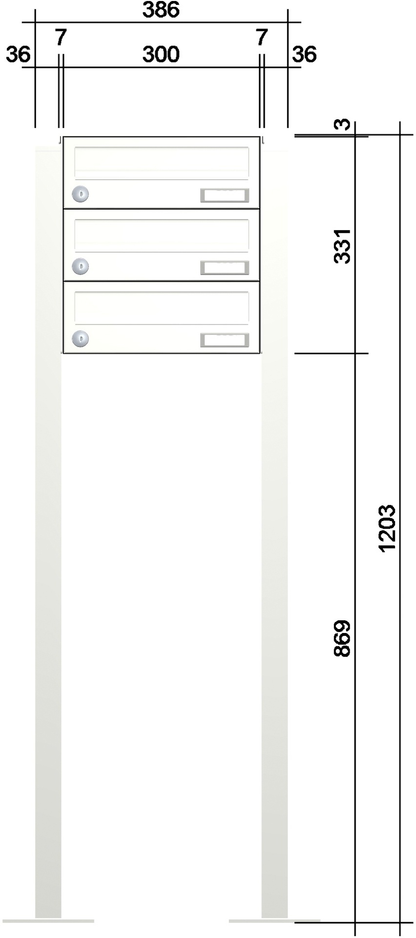 - ausgestattet mit Kunststoff-Namensschild und Edelstahl-verkapptem wasserdichtem Standardschloss mit zwei Schlüsseln; Blindkästen ebenfalls mit Standardschloss (wenn Blindfächer auf Grund der Kastenanzahl notwendig sind)