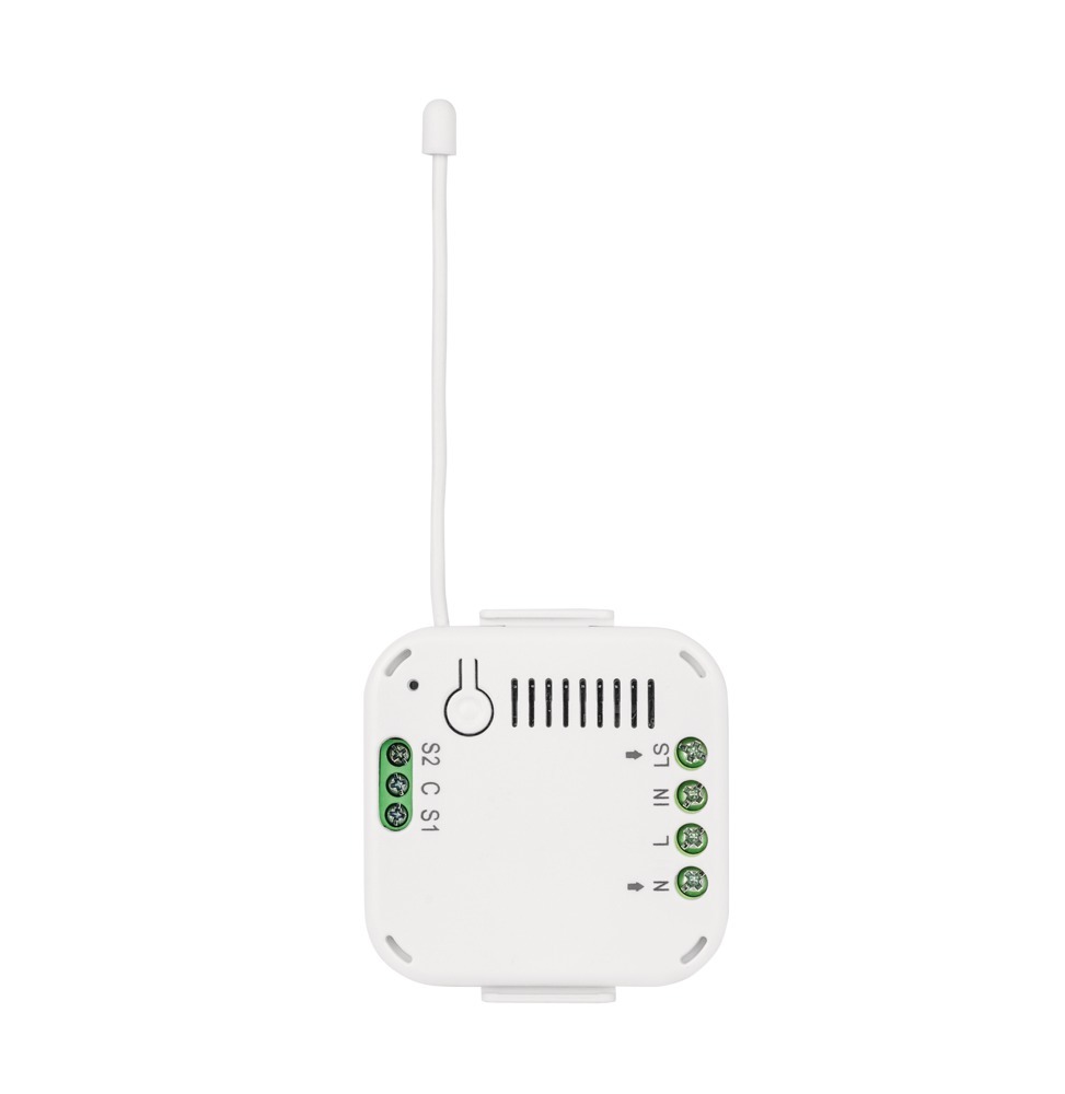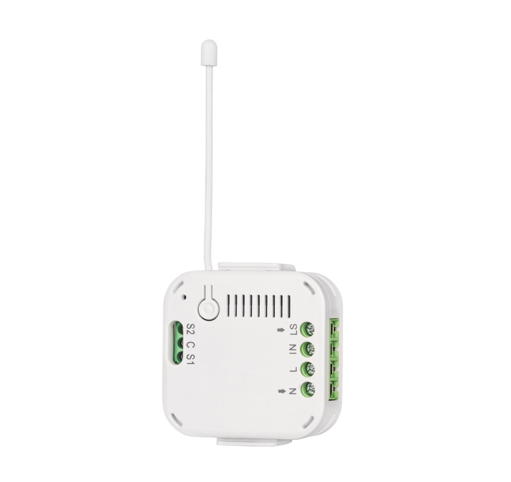 - 230V zum Schalten der Raumbeleuchtung für den kompakten Einbau in die Unterputz-Dose hinter den Lichtschalter