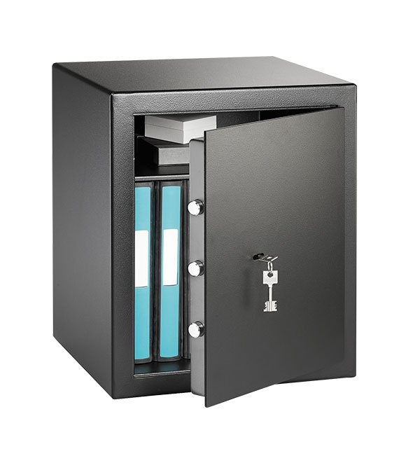 Die Konstruktion des Home-Safe ist doppelwandig. Also besonders widerstandsfähig gegenüber äußerer und gewaltsamer Einwirkung. Des Weiteren ist der Möbeleinsatztresor mit Feuerschutzmaterial nach DIN 4102-A1 und umlaufendem Feuerfalz ausgestattet. Der Innenraum mit Ordnertiefe und ein verstellbarer Fachboden sorgen für genügend Platz und ermöglichen eine organisierte Unterbringung. Das klassische und schlichte Design ist zeitlos und harmoniert mit fast jedem Möbelstück.