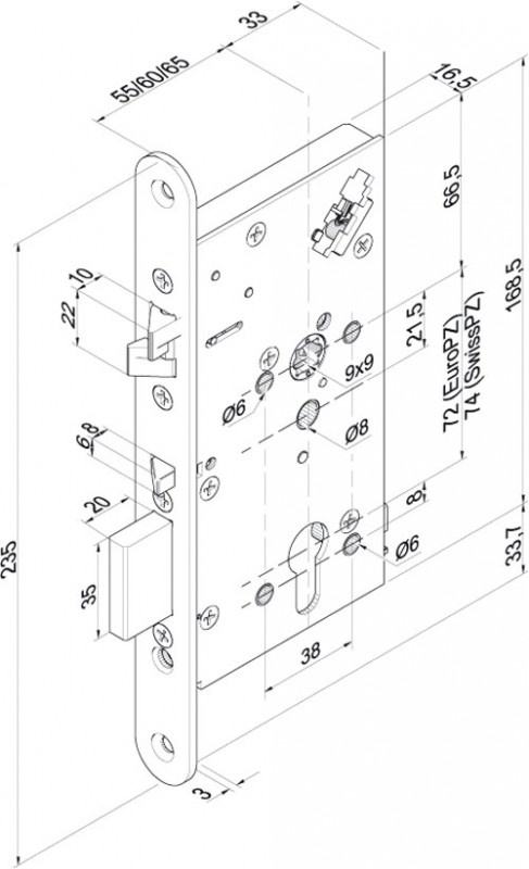 - Das Sicherheitsschloss mit Drückersteuerung wird vor allem dort eingesetzt, wo der Vorteil einer drückergesteuerten Entriegelung mit den mechanischen Sicherheitsanforderungen der Schlossmodelle 309X und 409X kombiniert werden muss