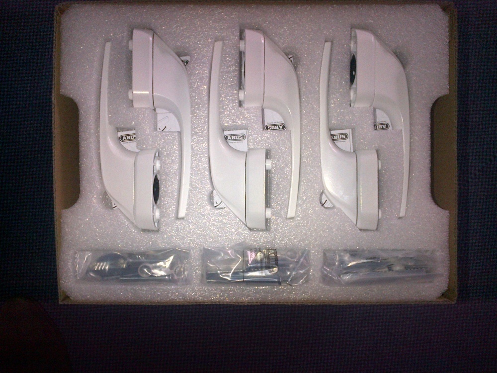 - Verschluss des Fenstergriffs über den Druckzylinder, Öffnen mit dem Schlüssel