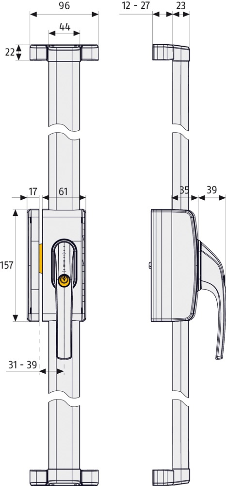 • Riegelstangen in zwei verschiedenen Längenvarianten erhältlich