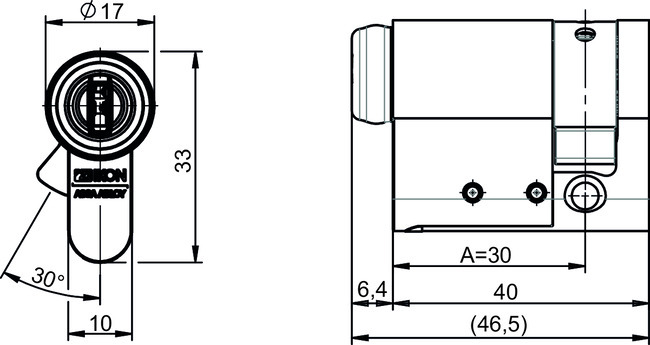 - Zylindergrundlänge 30 mm (A) (L=30) - weitere Baulängen lieferbar - flexibler Gehäusebaukasten