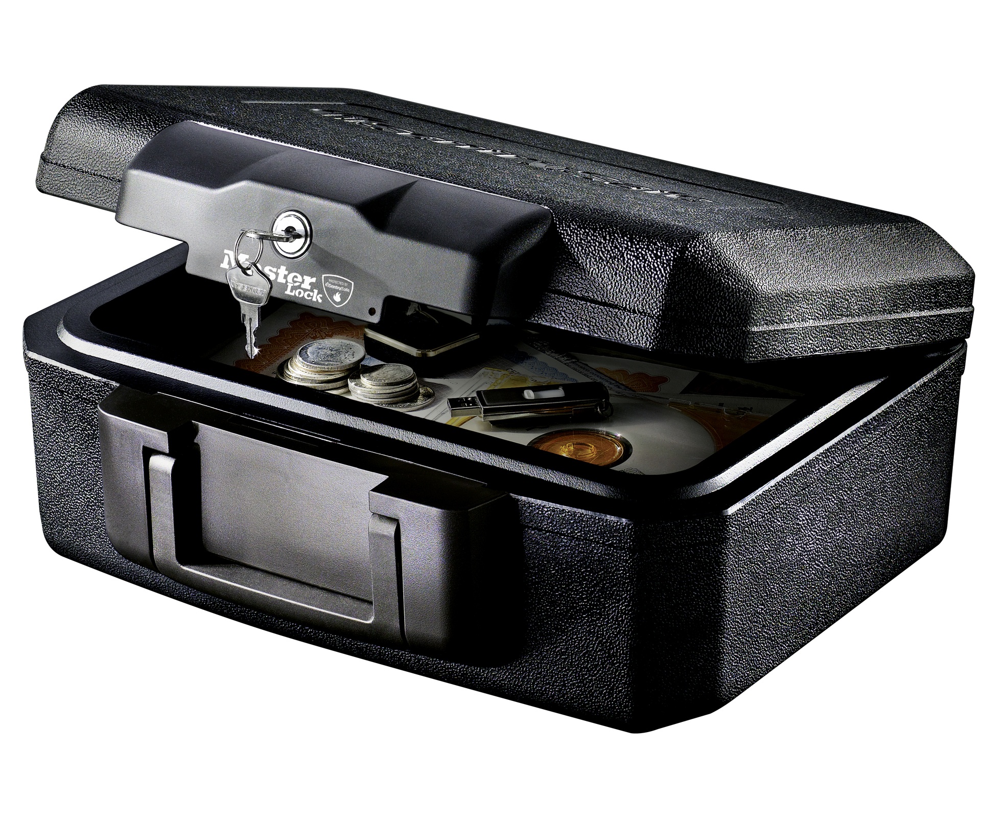 Die kleine Sicherheitskassette L1200 von Master Lock ist kompakt, vielseitig verwendbar und schützt Ihre wichtigsten Familiendokumente, Medien und Wertsachen vor Feuer. Mit ihrem Griff lässt sich die Kassette leicht tragen.