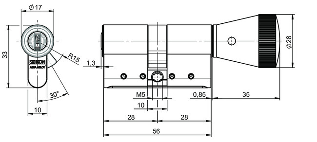 - Wahlweise abweichende Zylindergrundlänge ab 56 mm (C) - A/B (L=28/28)