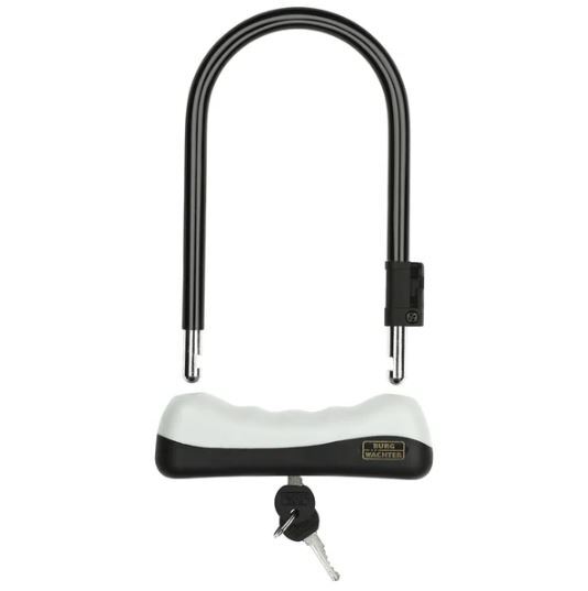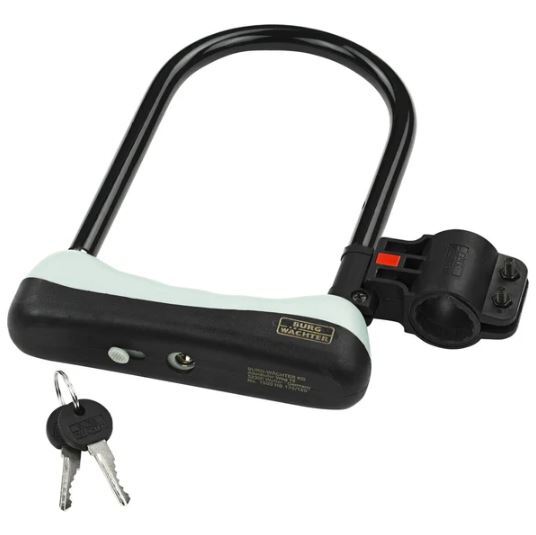 Der Bügel des 1500 HB Fahrradschlosses ist gehärtet und doppelt verriegelt. Korpus und Bügel sind mit schwarzem Kunststoff schützend ummantelt. Des Weiteren ist das Schloss mit einer praktischen Halterung für Ihr Fahrrad ausgestattet. Bitte beachten Sie hier, dass die Halterung nur bei Fahrrädern mit einem Rahmen-Durchmesser bis maximal 27 mm oder altrnativ ohne Schutzgummi bis maximal 36 mm angebracht werden kann.
