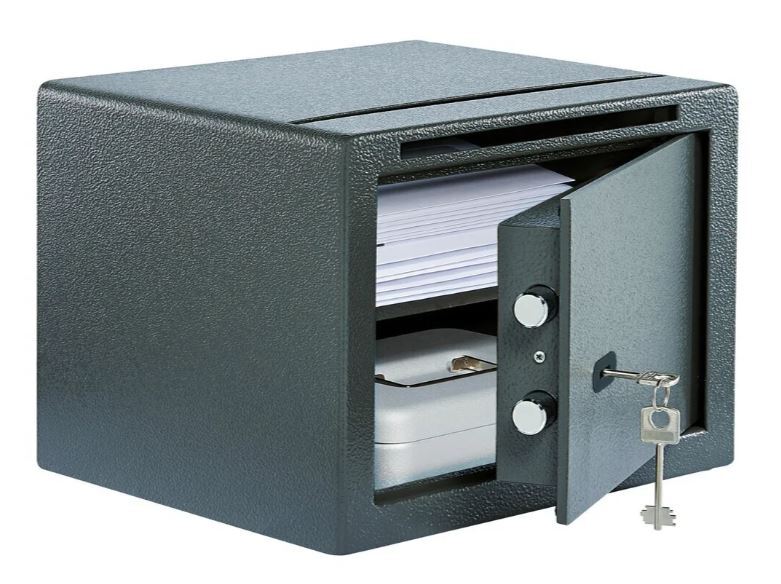 - Mit zwei Einwurfschlitzen für die schnelle Sicherung von Dokumenten