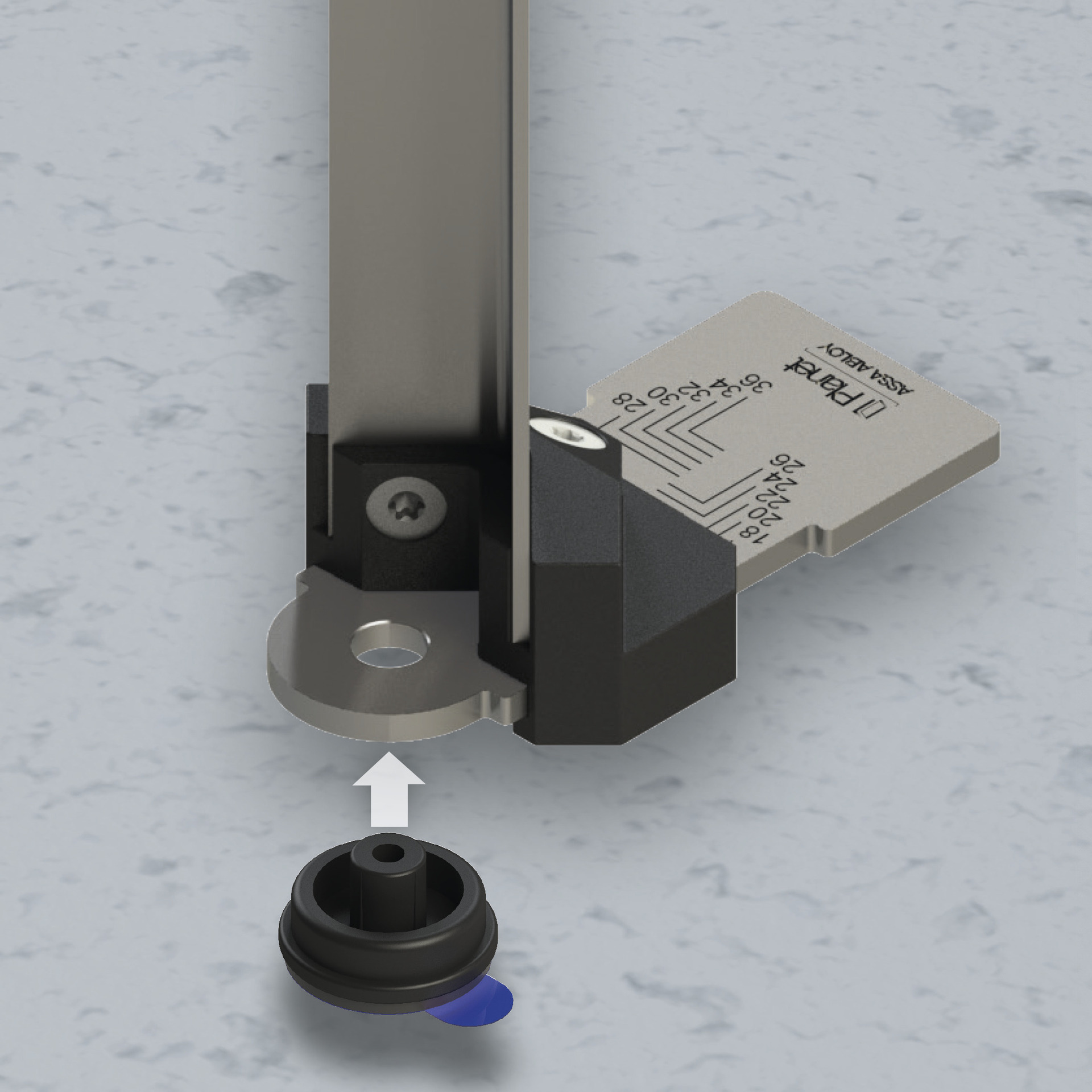 - Mit der smarten Positionierlehre wird der Klebefuß des FSA 8800 noch schneller und präziser angebracht