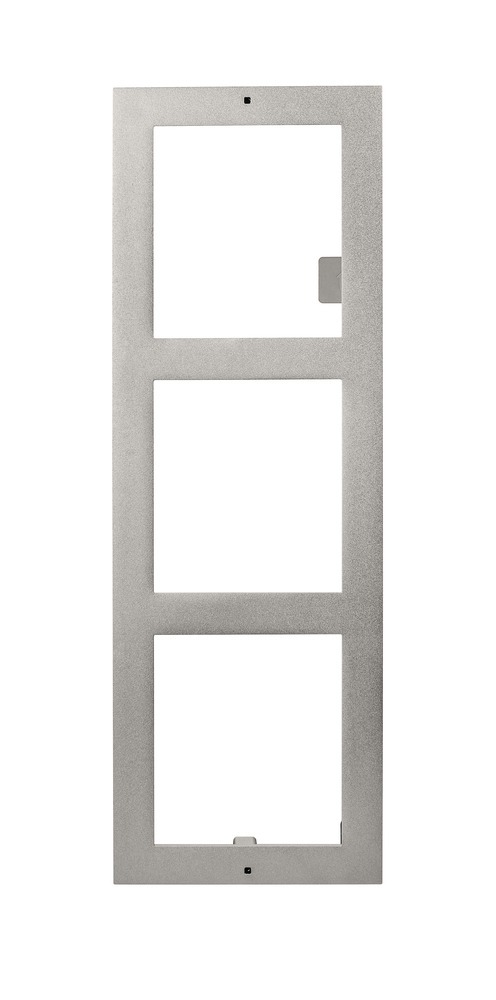 Beim Einbau von ModuVis-Modulen (Videomodul, Klingeltasten-Modul usw.) haben Sie die Wahl zwischen Auf- und Unterputzmontage. Und Sie wählen zwischen einem 1-fach Einbaurahmen (für 1 Modul), 2-fach und 3-fach Rahmen (für 3 Module). Dieser Einbaurahmen ist zur Aufputzmontage für 3 Module geeignet.