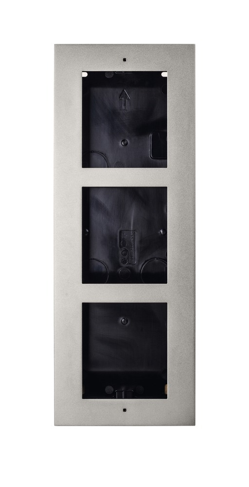 Beim Einbau von ModuVis-Modulen (Videomodul, Klingeltasten-Modul usw.) haben Sie die Wahl zwischen Auf- und Unterputzmontage. Und Sie wählen zwischen einem 1-fach Einbaurahmen (für 1 Modul), 2-fach und 3-fach Rahmen (für 3 Module). Dieser Einbaurahmen ist zur Unterputzmontage von 3 Modulen geeignet.