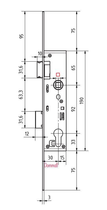 - 1-tourig, mit Wechsel, Riegelausschluss 12 mm