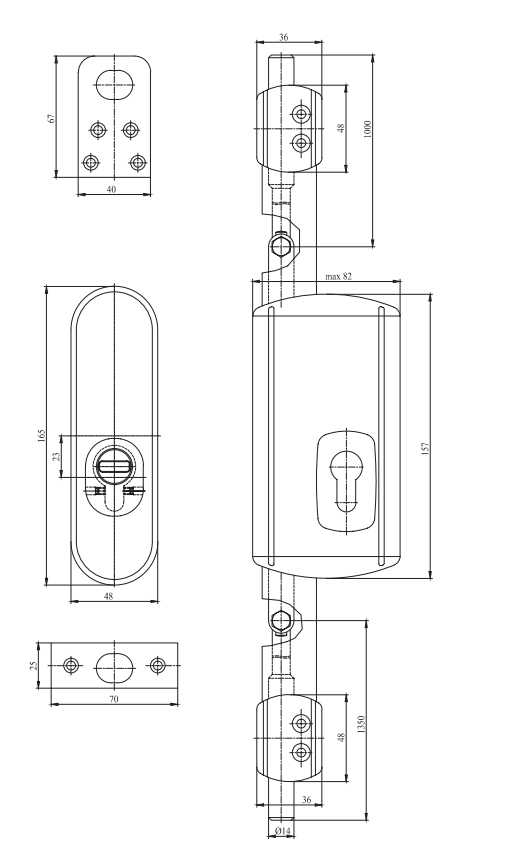 - Das Set beinhaltet Stangen (1000mm & 1350mm), Schlosskasten, Schutzbeschlag, Stangenabdeckung & Montagematerial