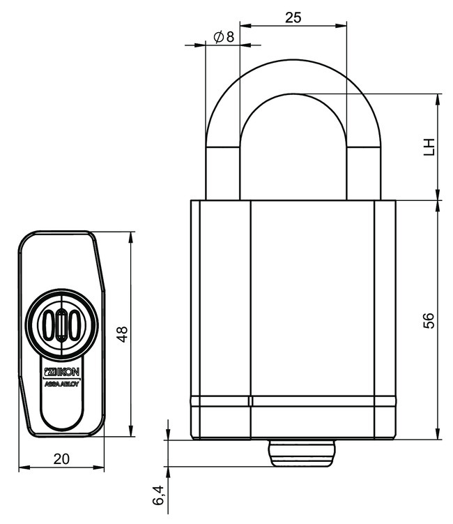 - Standard lichte Bügelhöhe 25 mm (AUS=LH25)